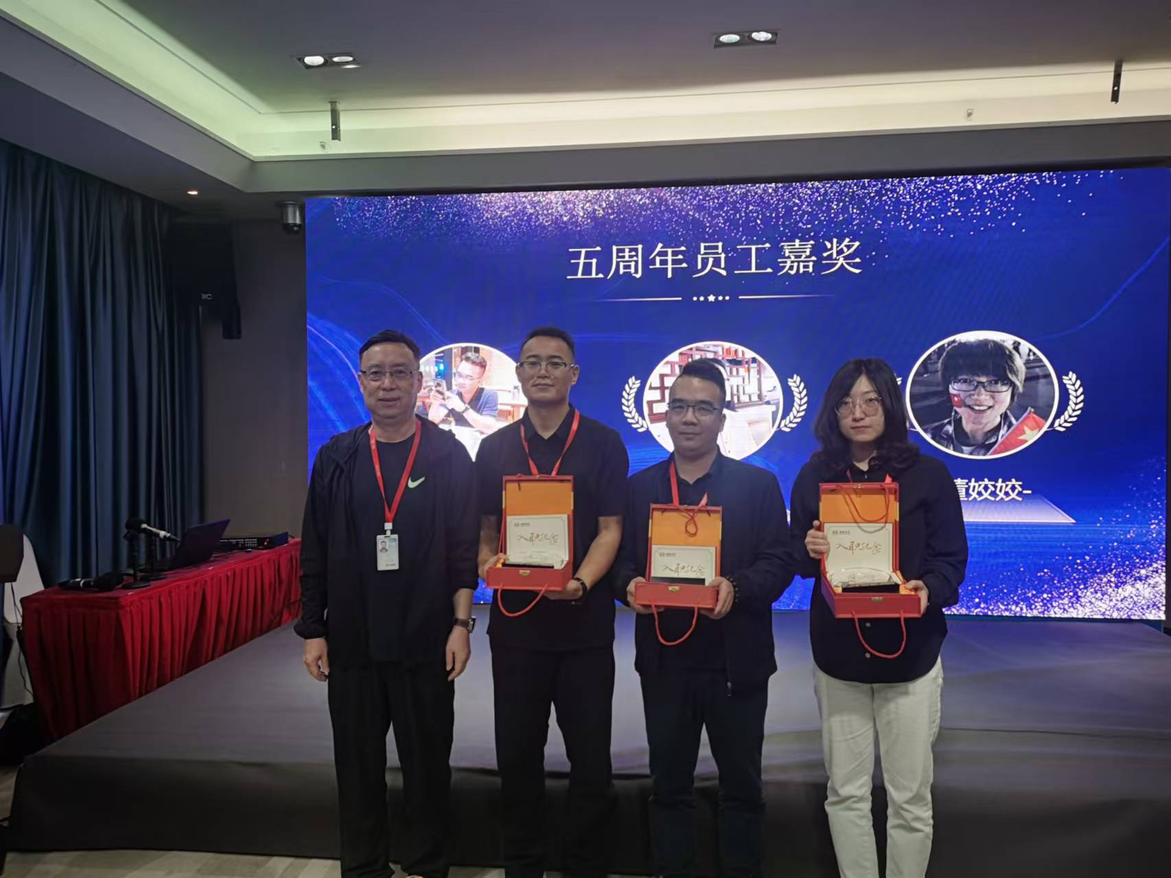 会议中,公司总经理还对入职满5周年的员工进行颁奖和表彰,让员工感受到了家的温暖。